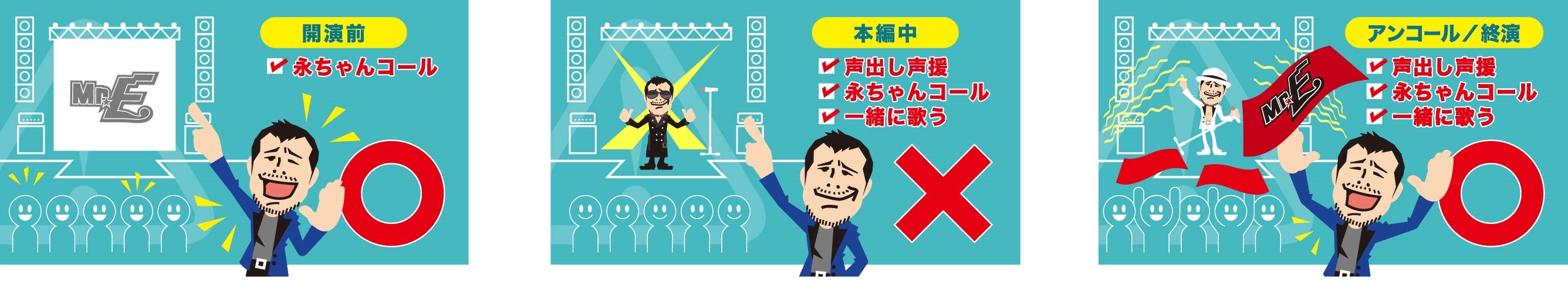 「永ちゃんコール」「一緒に歌う」などの行為については引き続き禁止とさせていただき、皆様のご協力をお願いしたいと存じます。
