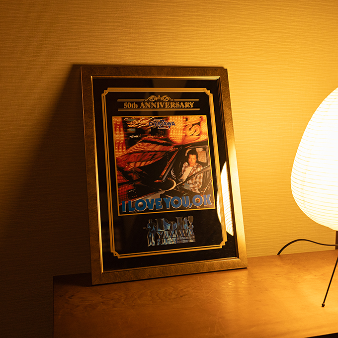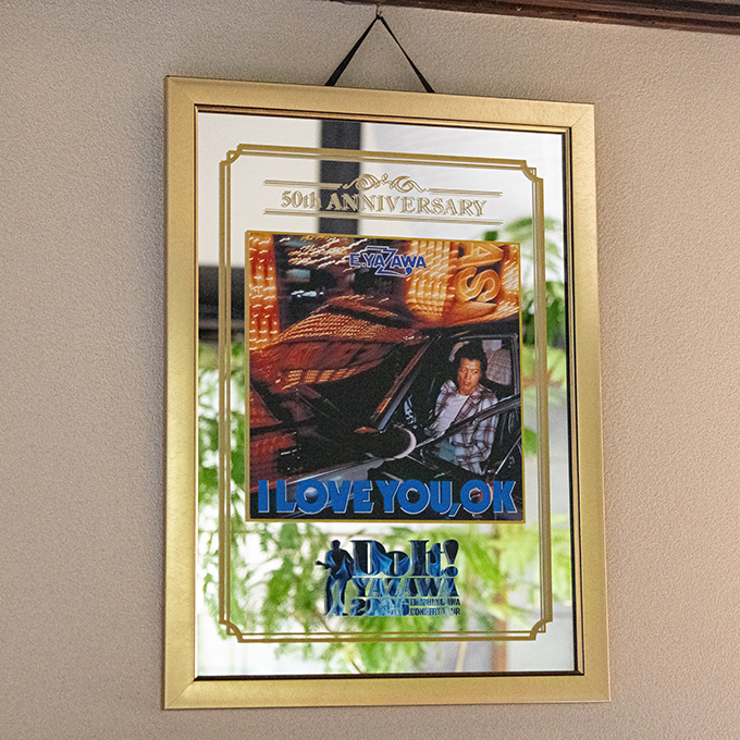 「I LOVE YOU,OK」のジャケット写真とツアーロゴがデザインされたパブミラー。ソロデビュー50周年を記念した特別な商品です。
